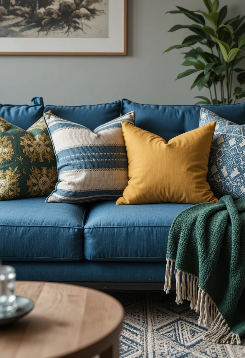 Okay, now we’re into the fun part—the details that take a room from “nice” to wow. I learned the hard way that just plopping down a blue couch isn’t enough. You need the right mix of textiles and accessories to tie everything together.