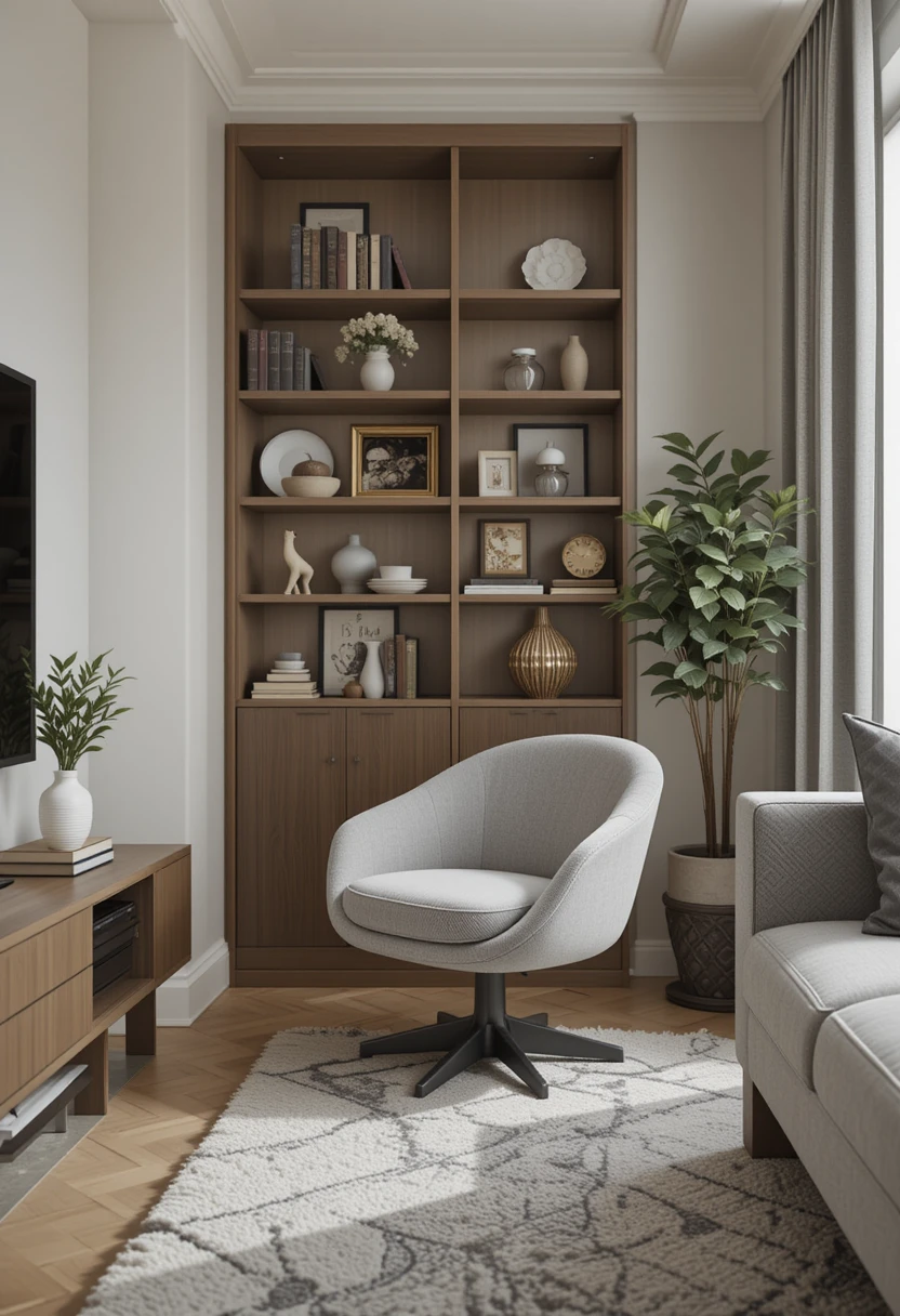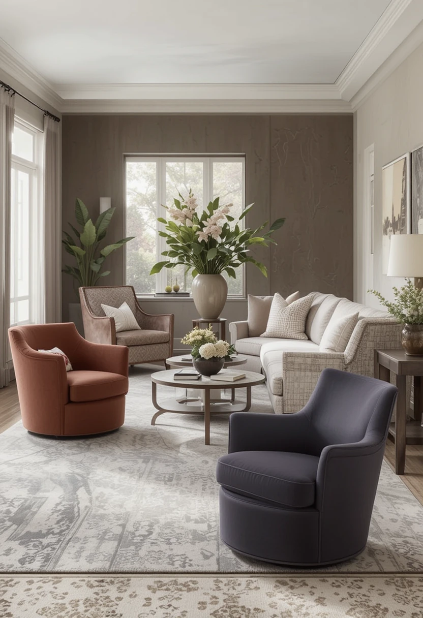 image of a cozy living room featuring a stylish swivel chair